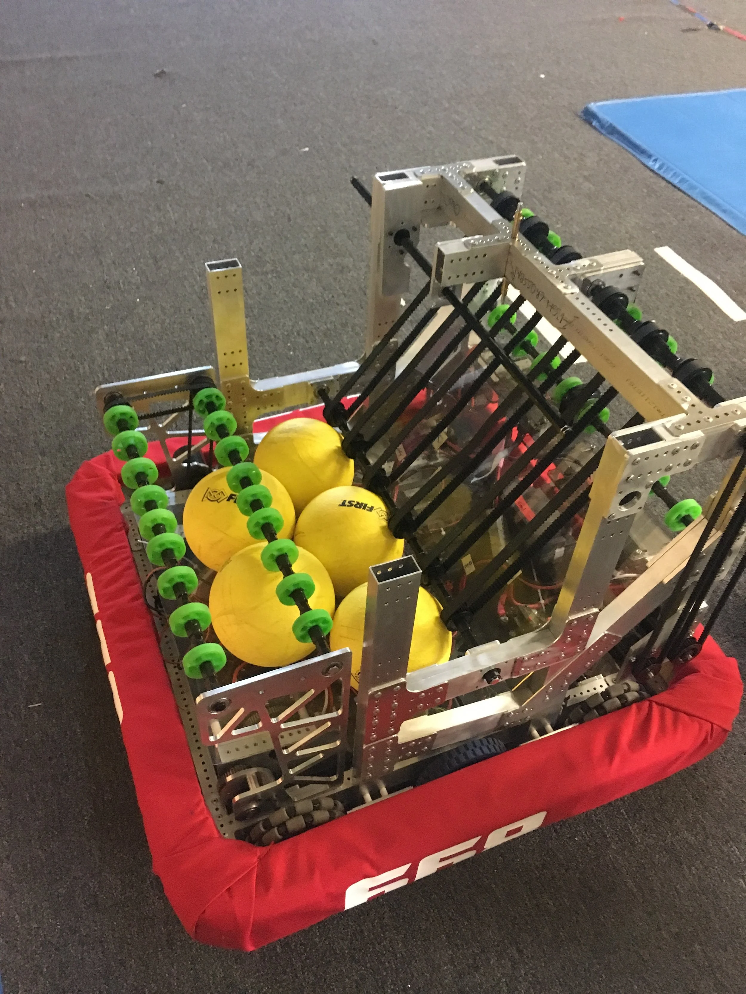 Red is the robot that I designed in my final year in FRC on Team 668, the Apes of Wrath. The robot was designed in OnShape and manufactured in-house during our 6 week build cycle. As the mechanical design lead, I personally designed the majority of the drivetrain and mechanisms of Red. I also lead the manufacturing team, while teaching and performing hands-on tasks including writing g-code, creating engineering drawings, and using our custom-built CNC routers.
