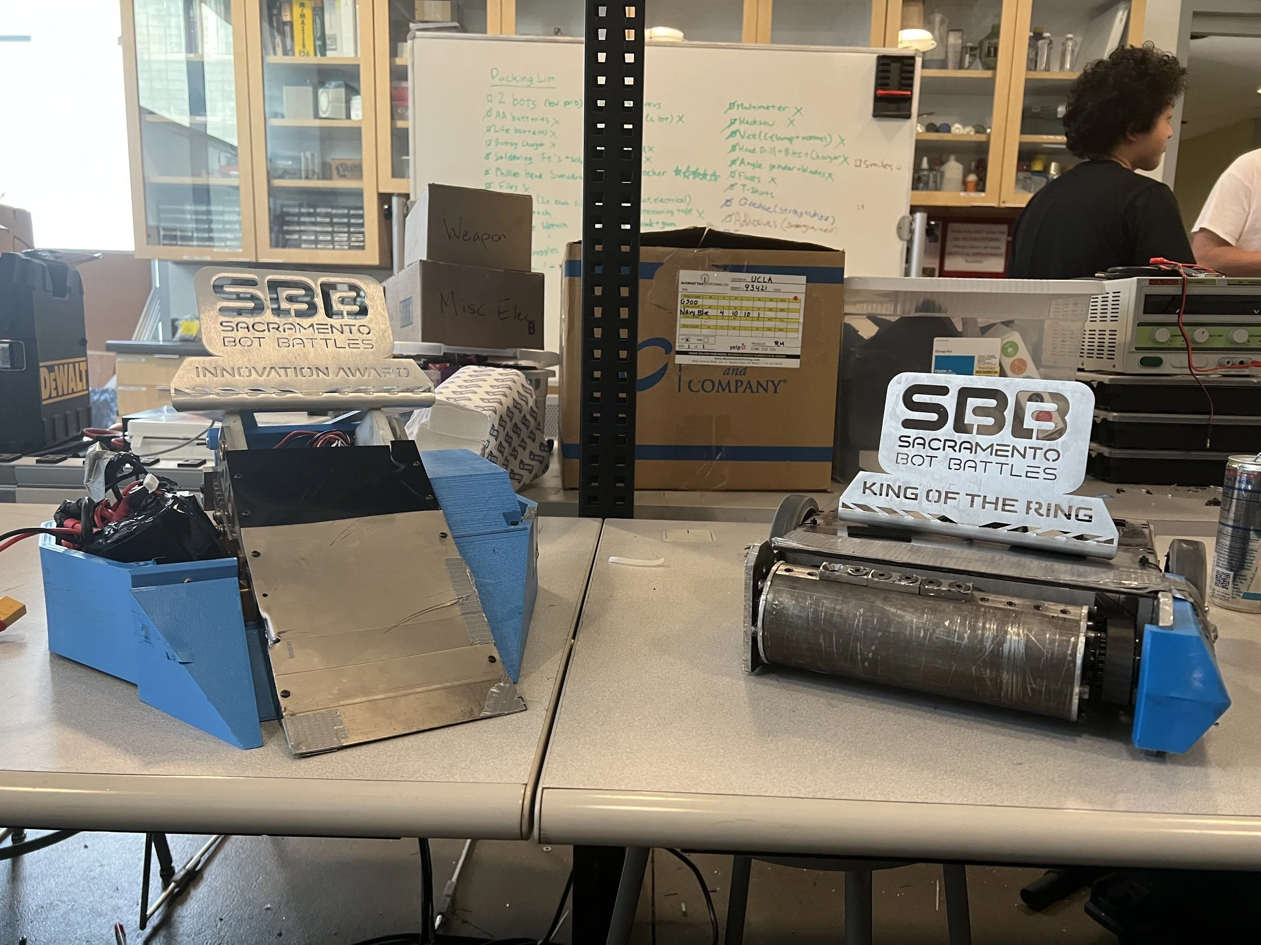 We competed at the annual Sacramento Bot Battles competition, where we took home the distinguished “Innovation Award” for our creative one-of-a-kind flipping mechanism.